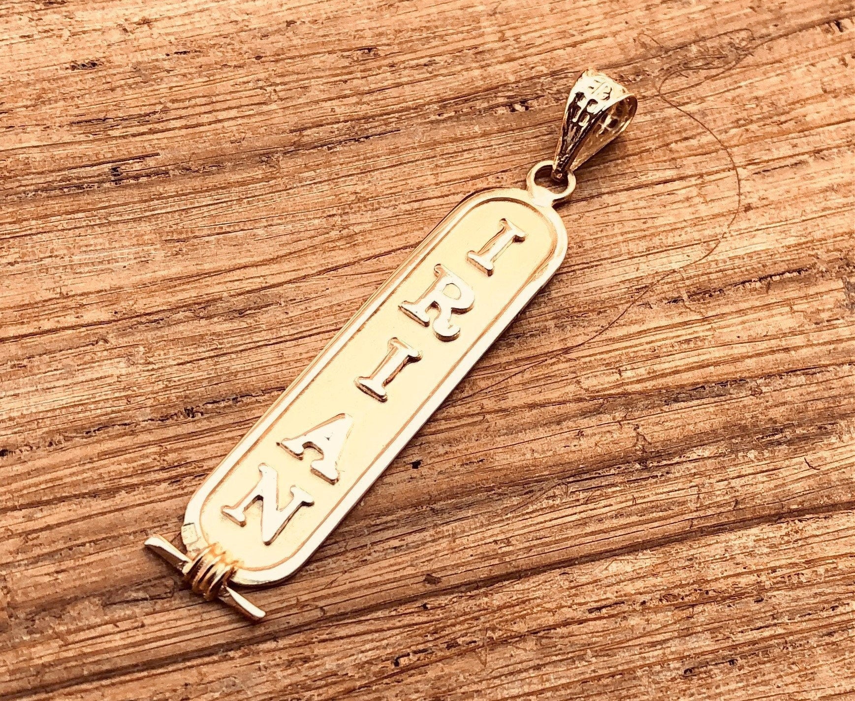 18k Solid Gold Cartouche pendant, Your Name Converted into Ancient Egyptian Hieroglyphic or English or Arabic language, Gold Cartouche Charm