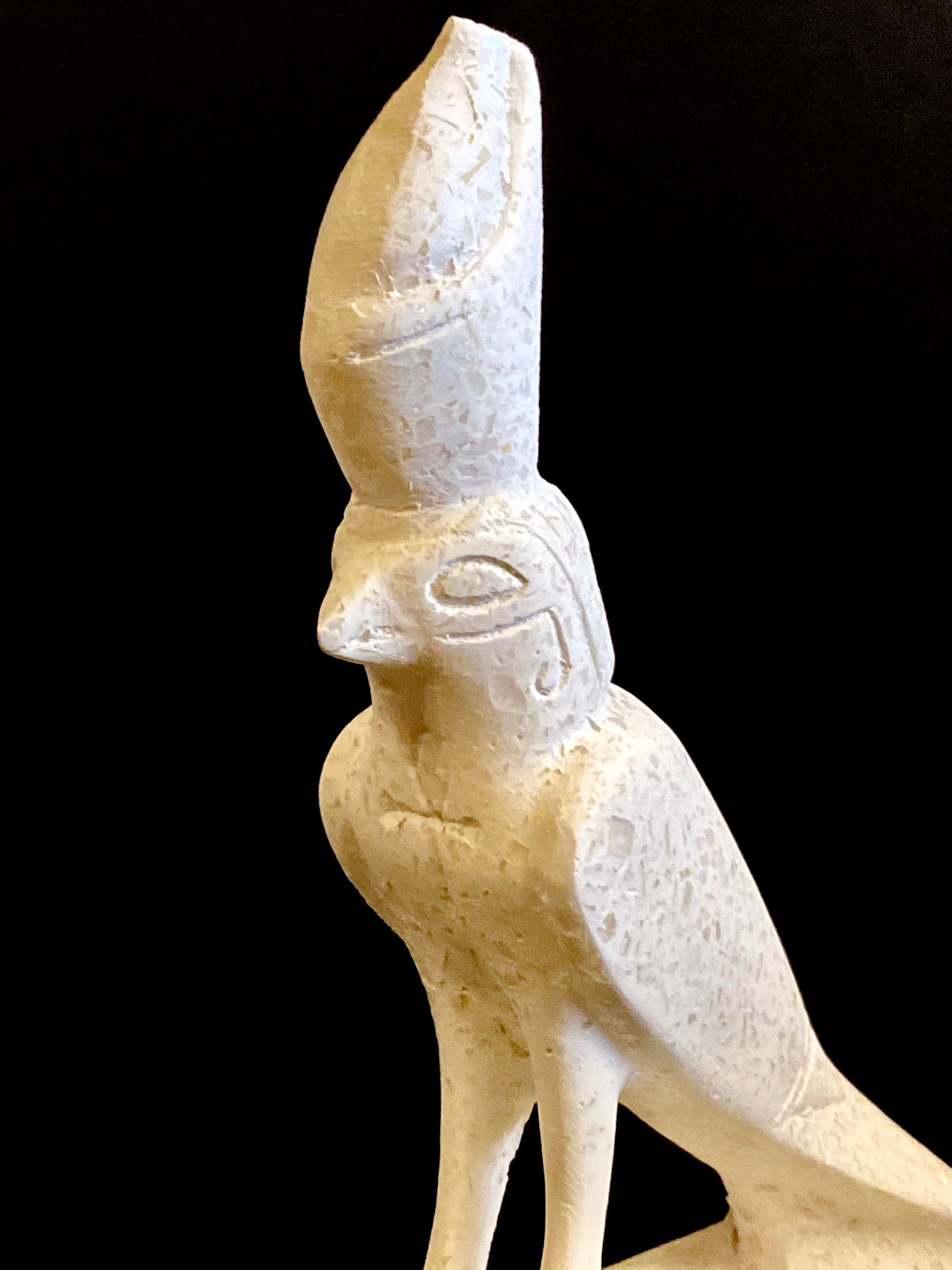 Sorry We donot Ship to Spain And Australia .... You are looking at Outstanding Commemorative Ancient Egyptian God Horus Featured as Flacon wearing the red and white crown, as a symbol of kingship over the entire kingdom of Egypt and Ankh Life Key On The Chest, Standing On Hieroglyphic Base, with wonderful hand made craftsmanship, From West Bank, Luxor