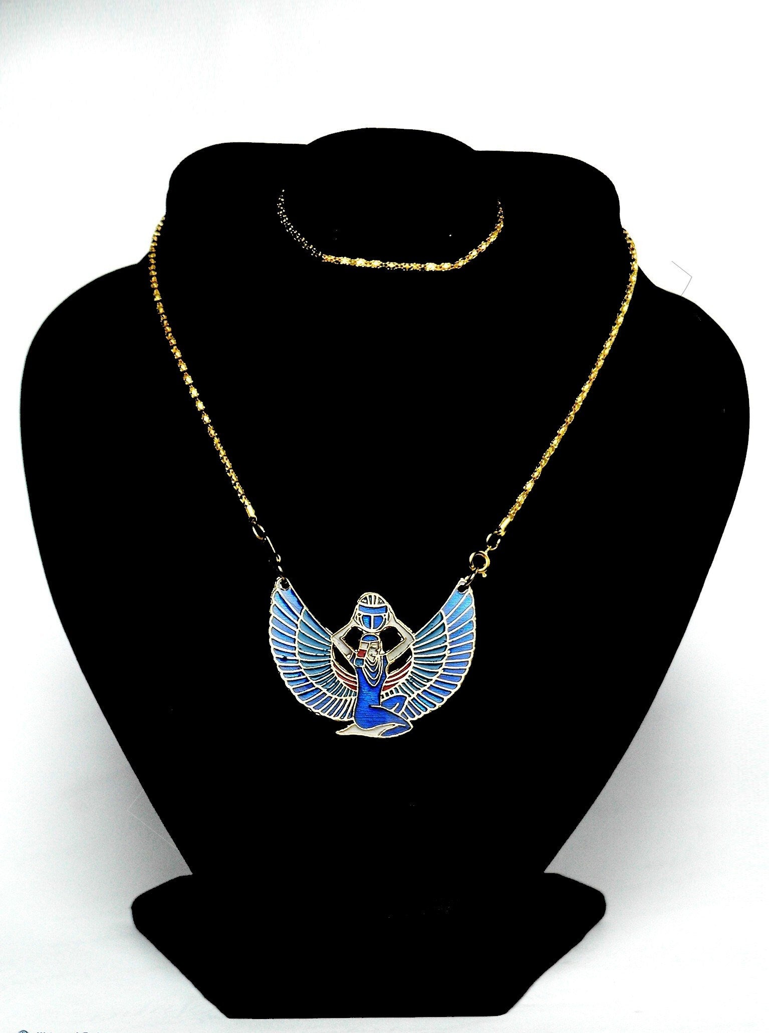 Amazing Egyptian Hand Made Brass Enameled Goddess Isis Colored Necklace Isis Jewelry Isis Pendant- Isis Necklace - Isis Charm - Winged isis
