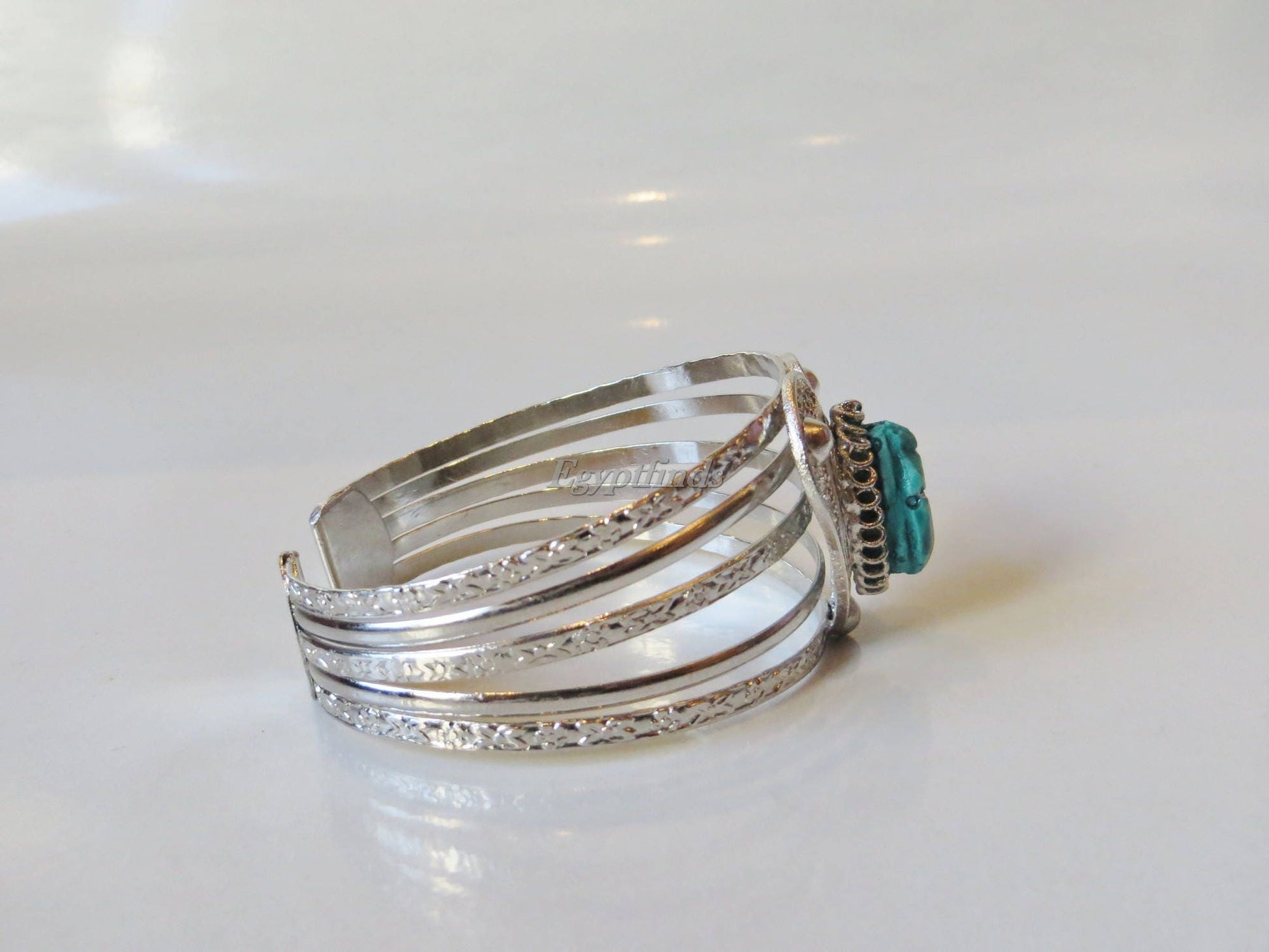 Amazing Egyptian Silver Plated Turquoise Scarab Heart bracelet .US express shipping
