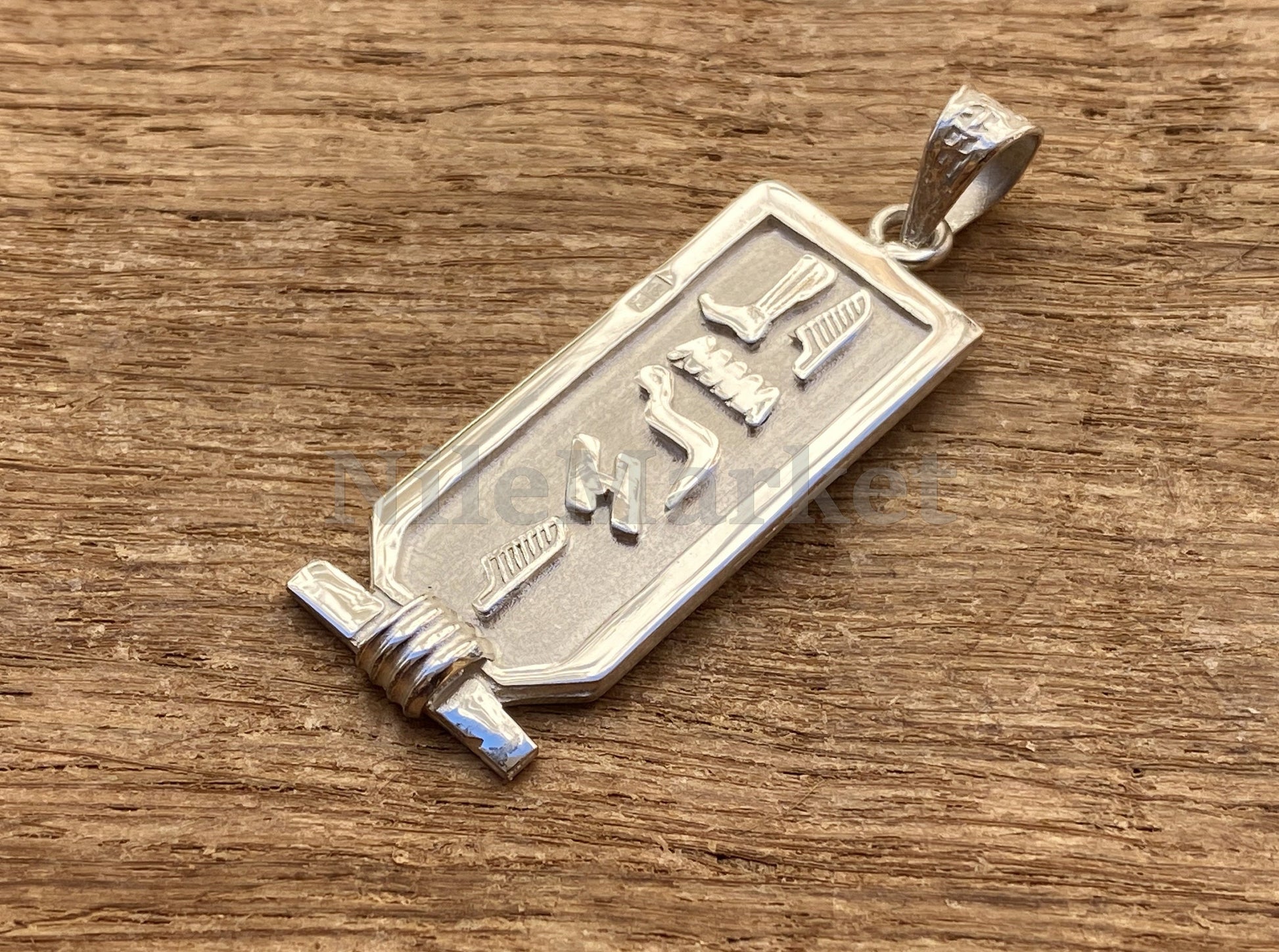 Sorry We donot Ship to Spain And Australia .... Get your name in ancient Egyptian Hieroglyphics on this wonderful sterling silver Large Cartouche .made from high grade quality sterling silver. Excellent for a male or female and looks simply stunning. Would make an excellent gift your lover.