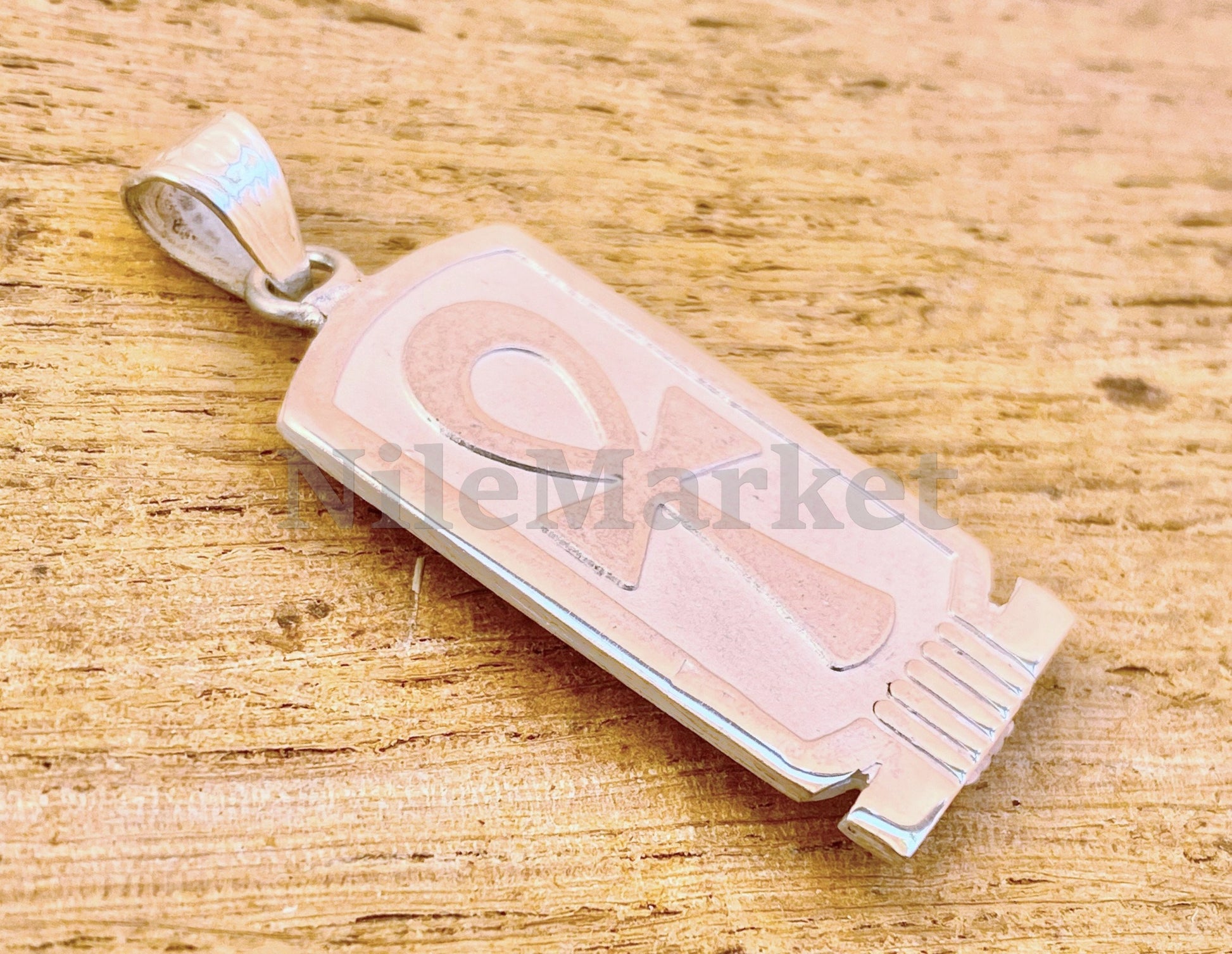 Customized Egyptian Sterling Silver Ankh Cartouche Charm , hieroglyph personalize - cartouche égyptienne or - personalize cartouche