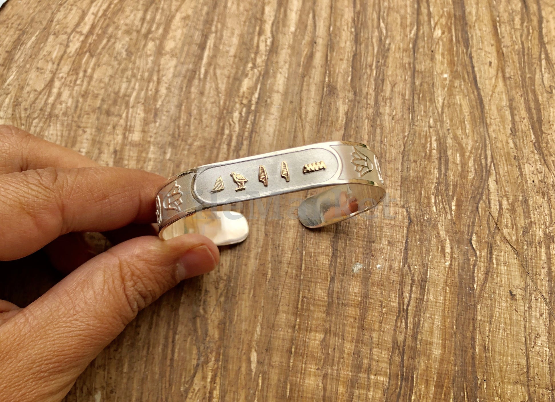 Egypt Wide Personalized Solid Silver Cartouche Cuff Bangle Bracelet Cartouche - personalize cartouche -Cartouche Name Plate Bracelet