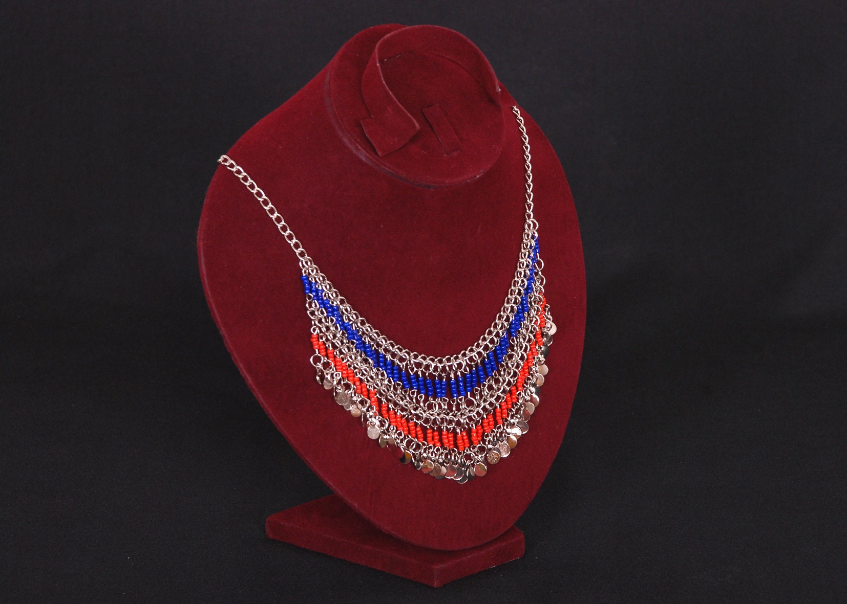 Egyptian Belly Dance lovely tribal silver plated red and blue necklace