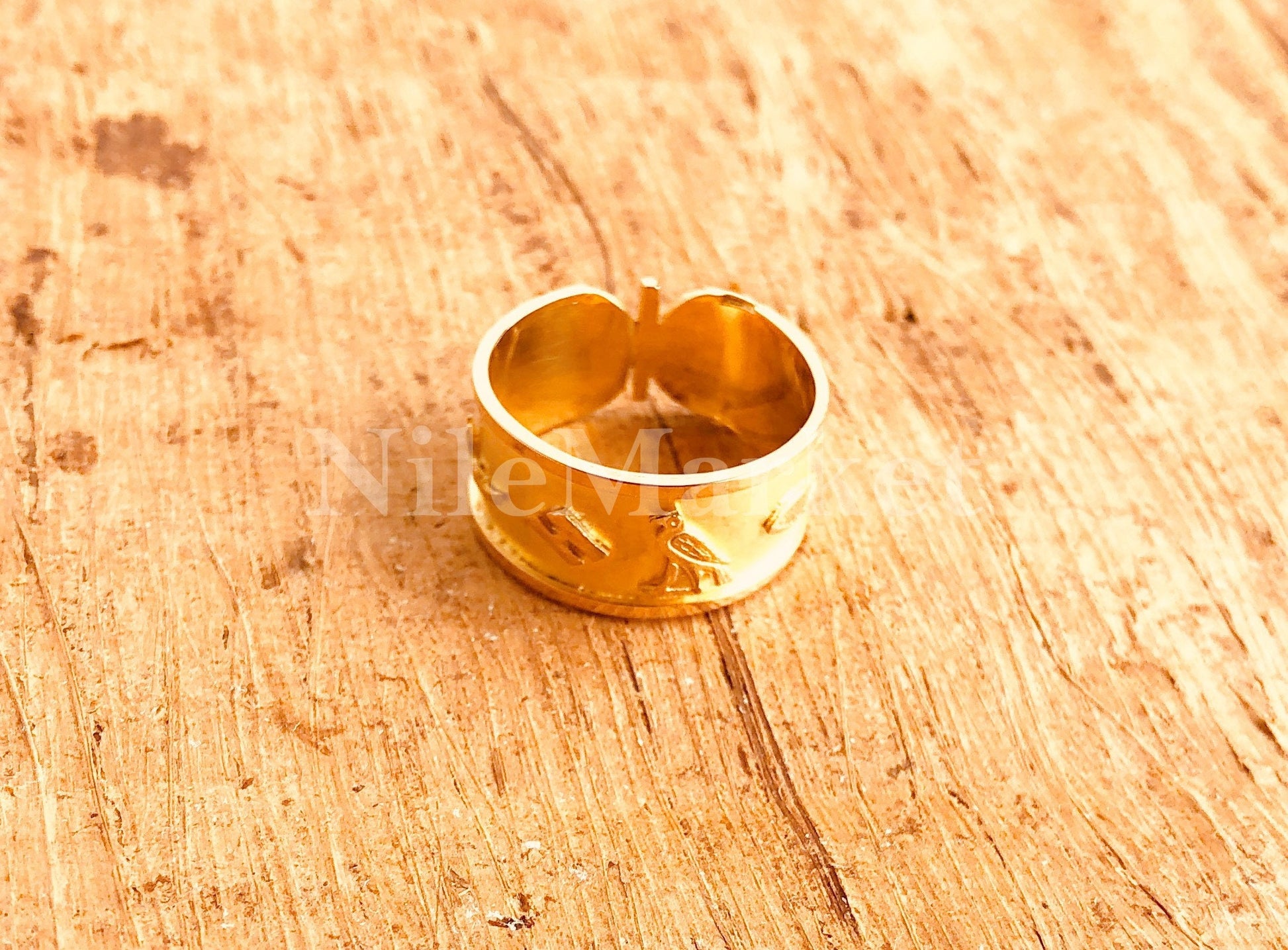 Sorry We donot Ship to Spain And Australia .... Get your name in (ancient Egyptian Hieroglyphics Or English Or Arabic) English Numbers or Symbols like Heart, Dot, Ankh, Scarab, Winged isis, Lotus Flowers, King Tut Mask And Nefertiti are available)on this Solid 18K Gold cartouche ring. made from high grade quality 18K gold. Comes In Gift Pouch