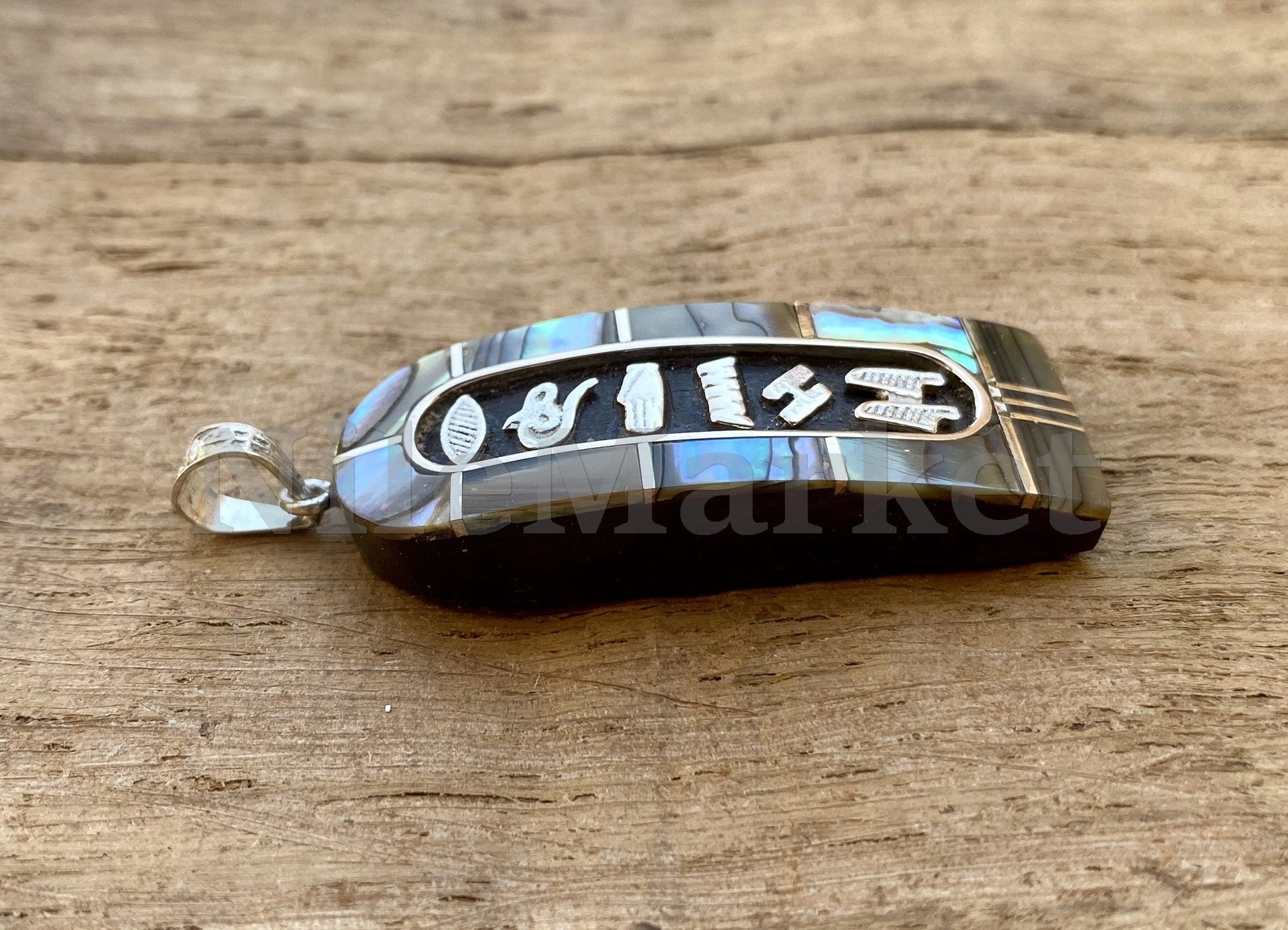 Materials: Hallmarked Solid Sterling Silver Cartouche - Ebony Wood - inlaid