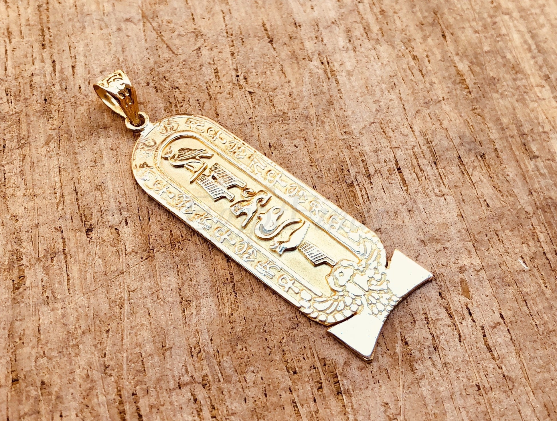 Sorry We donot Ship to Spain And Australia .... Get your name in (ancient Egyptian Hieroglyphics Or English Or Arabic) on this wonderful solid yellow 18K gold Royal cartouche. made from high grade quality solid gold .Would make an excellent gift