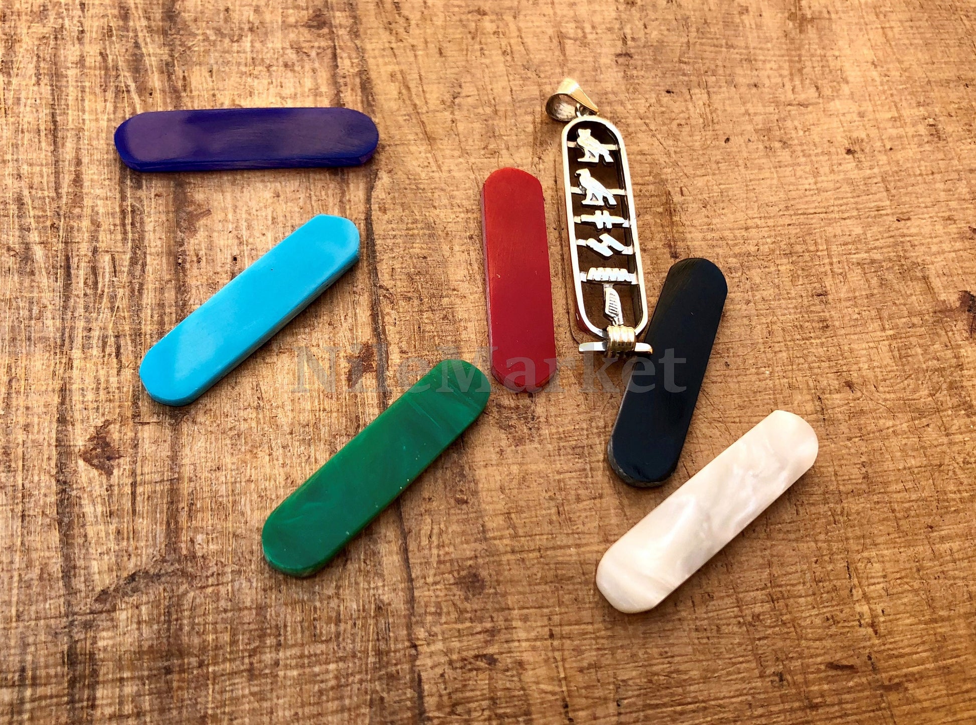 Customization 7- 8 characters if the name contains characters like CH, SH ,TH , which translated to one symbol.Also Characters like ( Ankh, Scarab, Winged isis,nefertiti, Nefertiti, Heart, Lotus Flowers Eye Of Horus are available)
