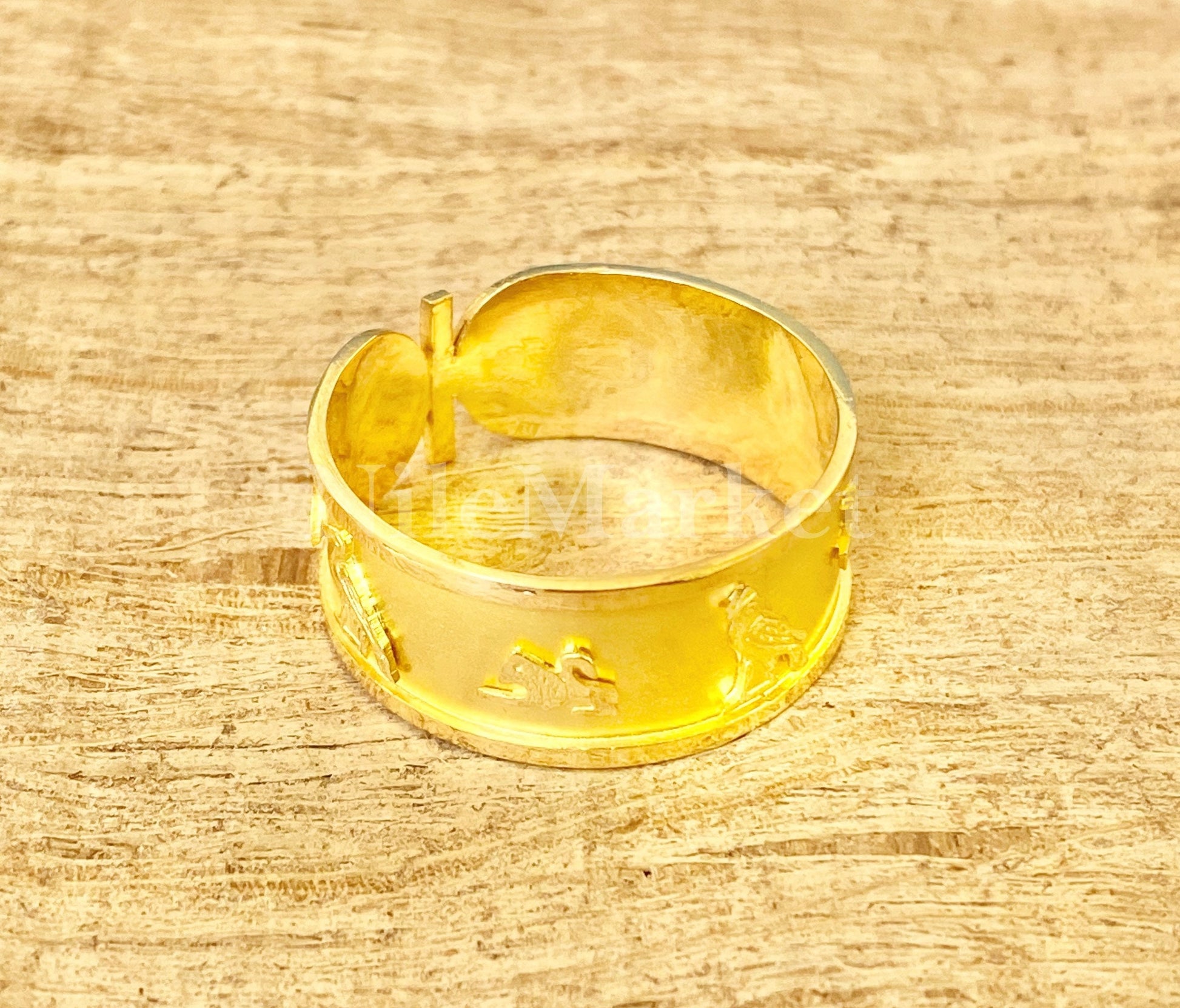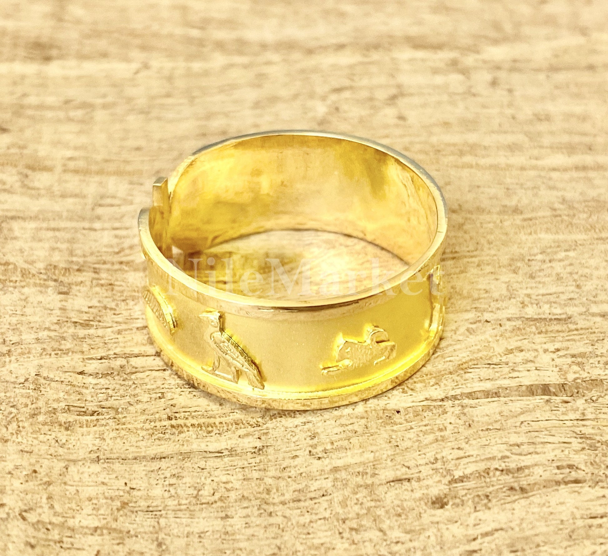 Sorry We donot Ship to Spain And Australia .... Get your name in (ancient Egyptian Hieroglyphics Or English Or Arabic) English Numbers or Symbols like Heart, Dot, Ankh, Scarab, Winged isis, Lotus Flowers, King Tut Mask And Nefertiti are available)on this Solid 18K Gold cartouche ring. made from high grade quality 18K gold. Comes In Gift Pouch