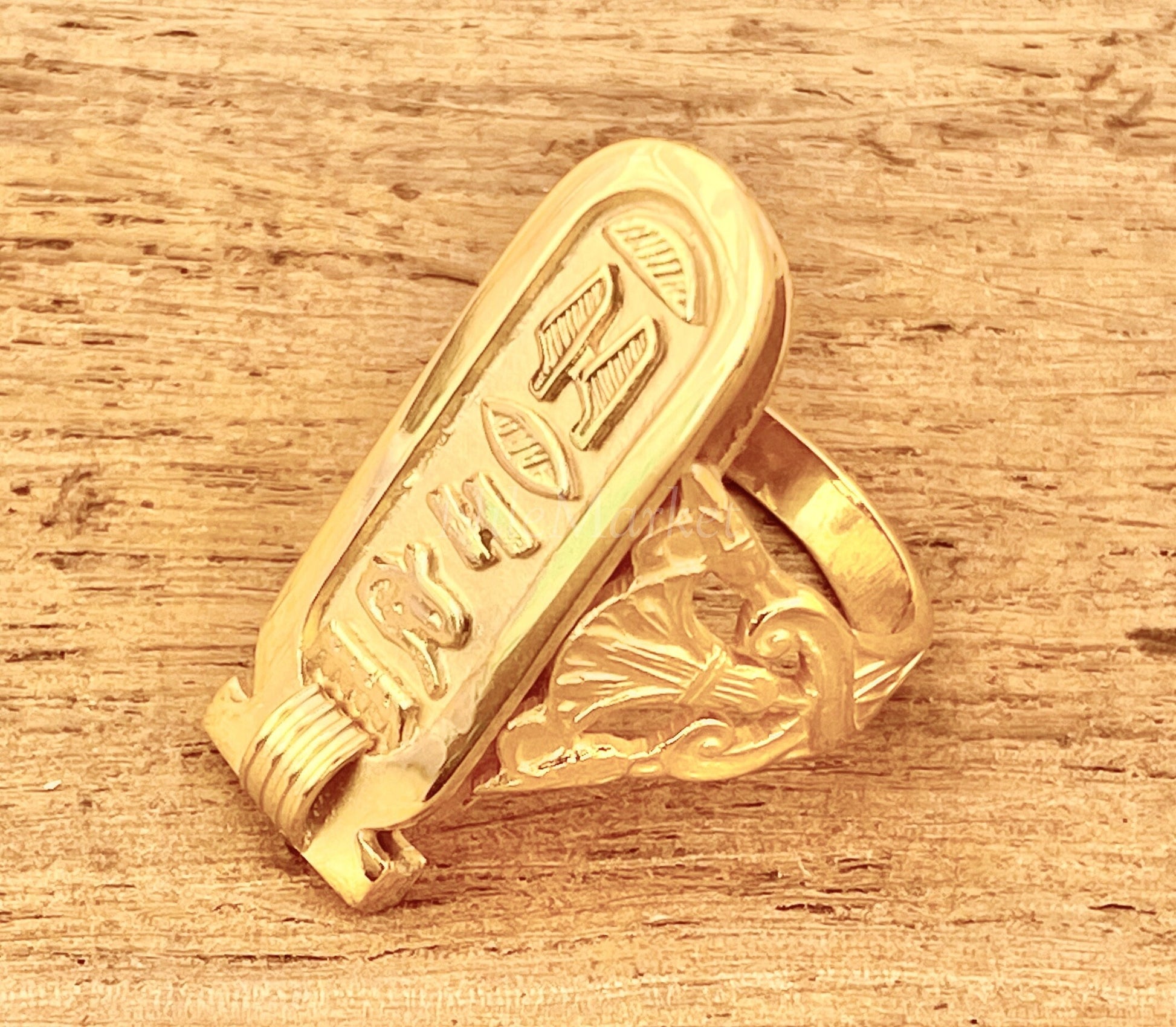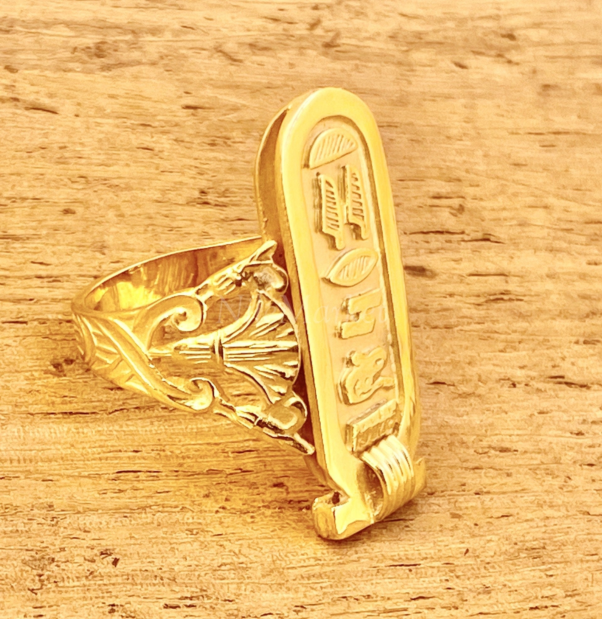 Egyptian Personalized Customized 18k Solid Gold Cartouche Ring Express Shipping World Wide -Personalized in English & Hieroglyphs