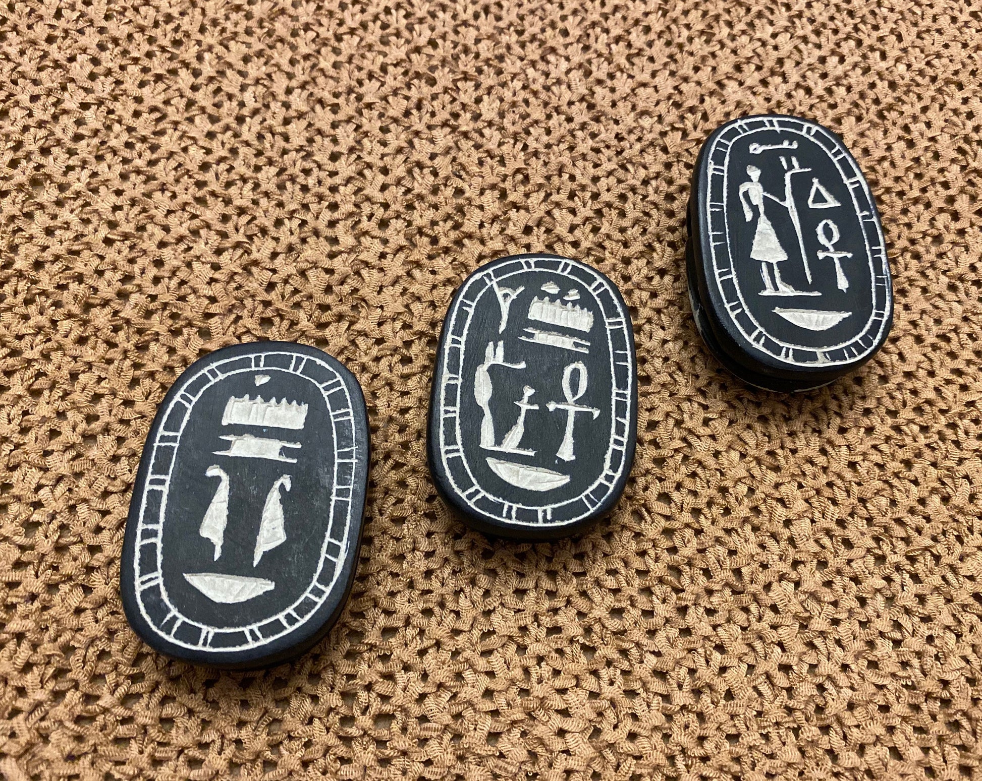 Sorry We donot Ship to Spain And Australia .... You are looking at Group Of 3 Hand Made Outstanding Black Scarabs Khepri The Sacred Beetle Statue, with Fine Hieroglyphics Detail On The Bottom , Scarabs were used for their magical rejuvenating properties by both the living and the dead, From West Bank,Luxor