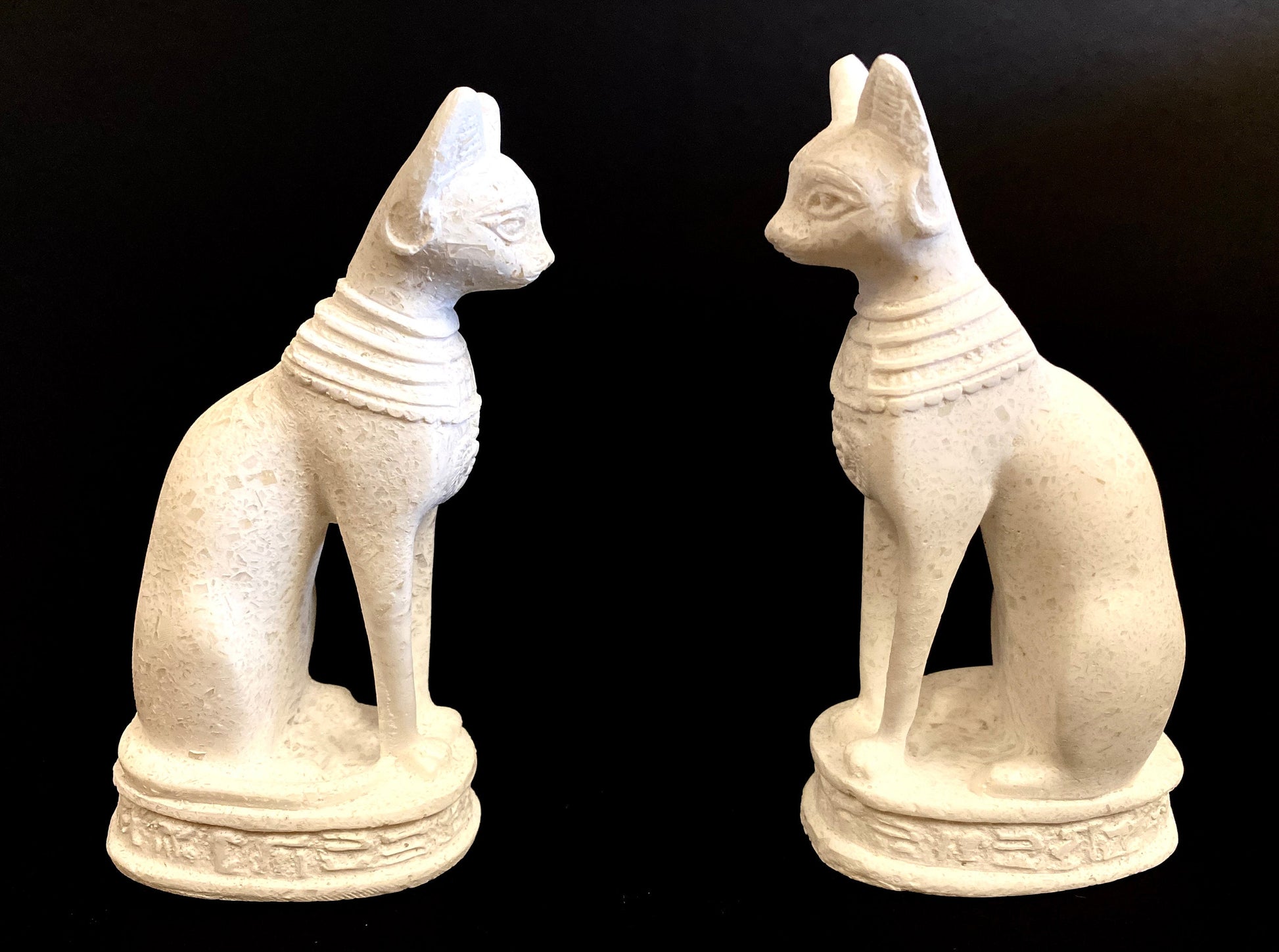 Sorry We donot Ship to Spain And Australia .... You are looking at Amazing Commemorative Group Of Two Sculptures Of Ancient Egyptian Goddess Bast / Bastet a feline goddess Represented As Two Cats Sitting On Hieroglyphic Base adorned with an earring. , handcrafted in The West Bank,Luxor