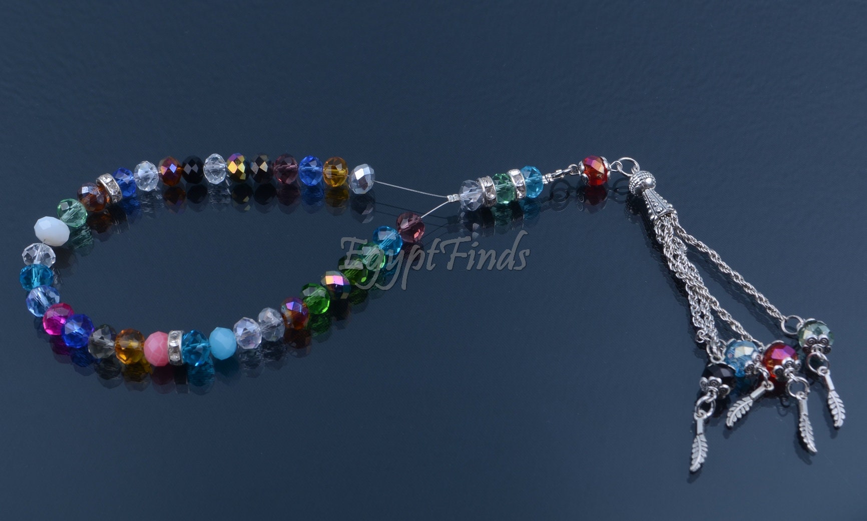Islamic Salah MultiColored Crystal Prayer Beads 33 Misbaha Tasbih Sibha Masbaha