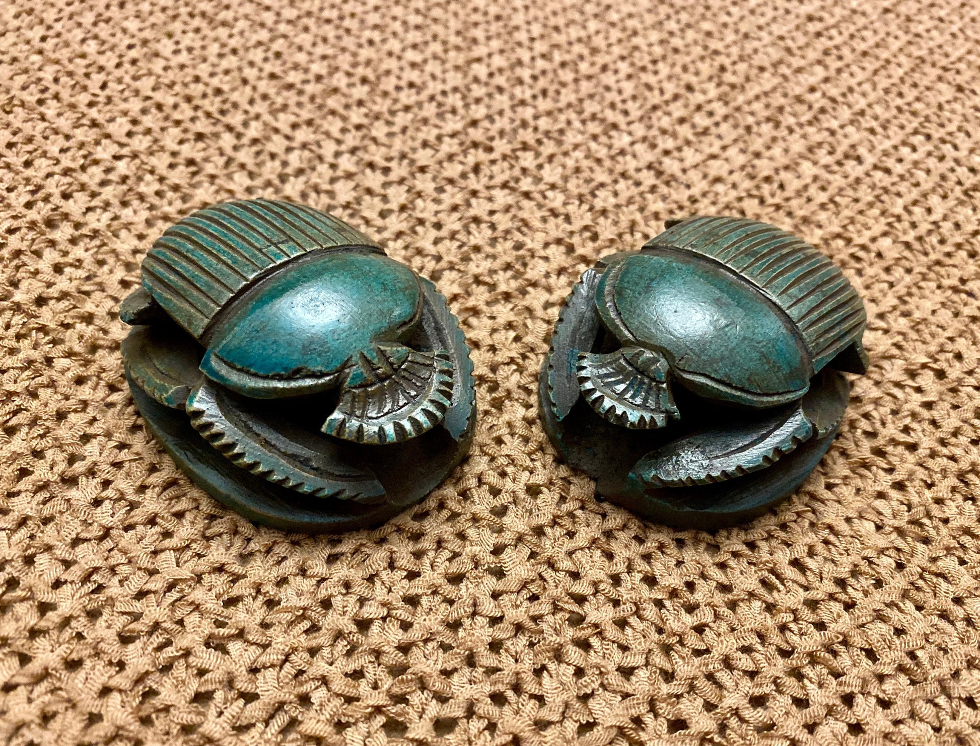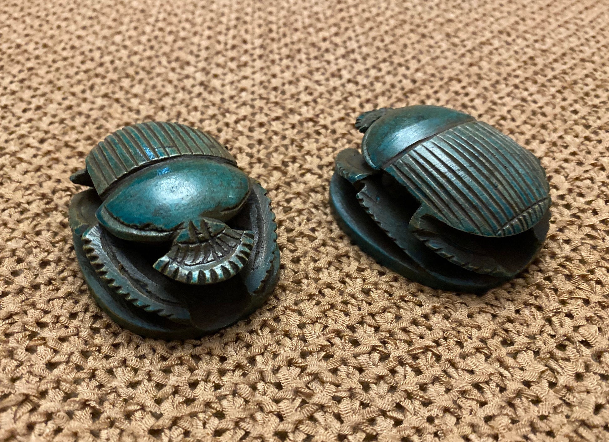 Sorry We donot Ship to Spain And Australia .... You are looking at fabulous Hand-crafted Group Of Two Scarabs Feature Glazed Faience Beetle Statue, with fine Hieroglyphic Inscriptions On The Bottom , Scarabs were used for their magical rejuvenating properties by both the living and the dead, From West Bank,Luxor