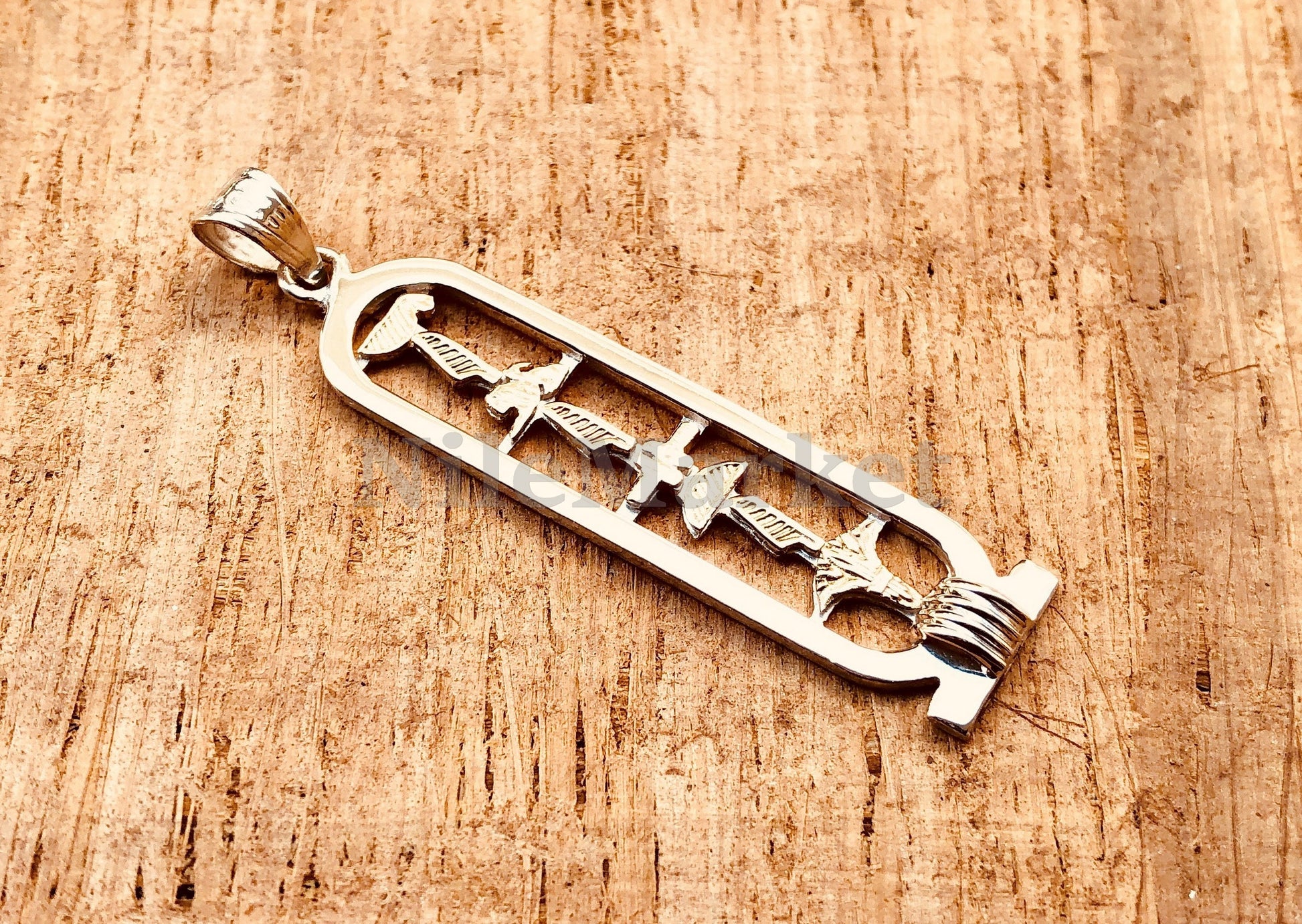 Sorry We donot Ship to Spain And Australia .... Get your name in ancient Egyptian Hieroglyphics on this wonderful sterling Royal silver open work cartouche. made from high grade quality sterling silver,Comes In Gift Pouch .Would make an excellent gift