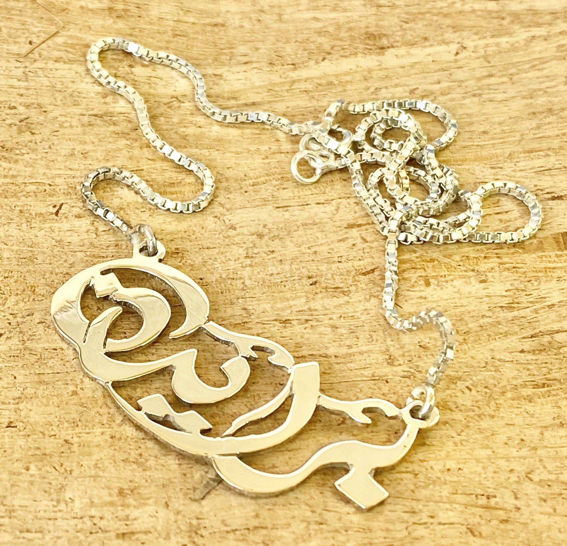 Please leave a note with your payment or purchase with the name you like to have it in Arabic or English , also you can email us the name also the length you need for your chain our standard is 45 cm (17.7")
