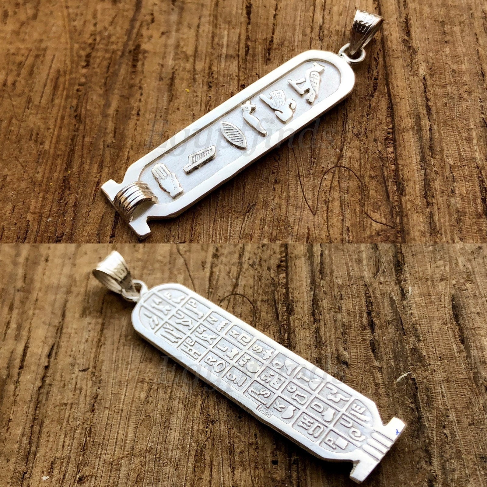 PUT YOUR NAME On Egyptian Personalized Sterling Silver Cartouche Pendant With Glyphs On The Back