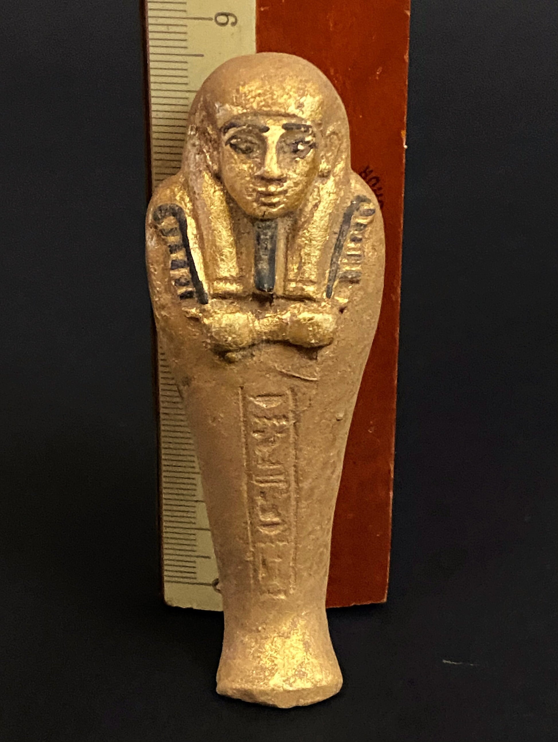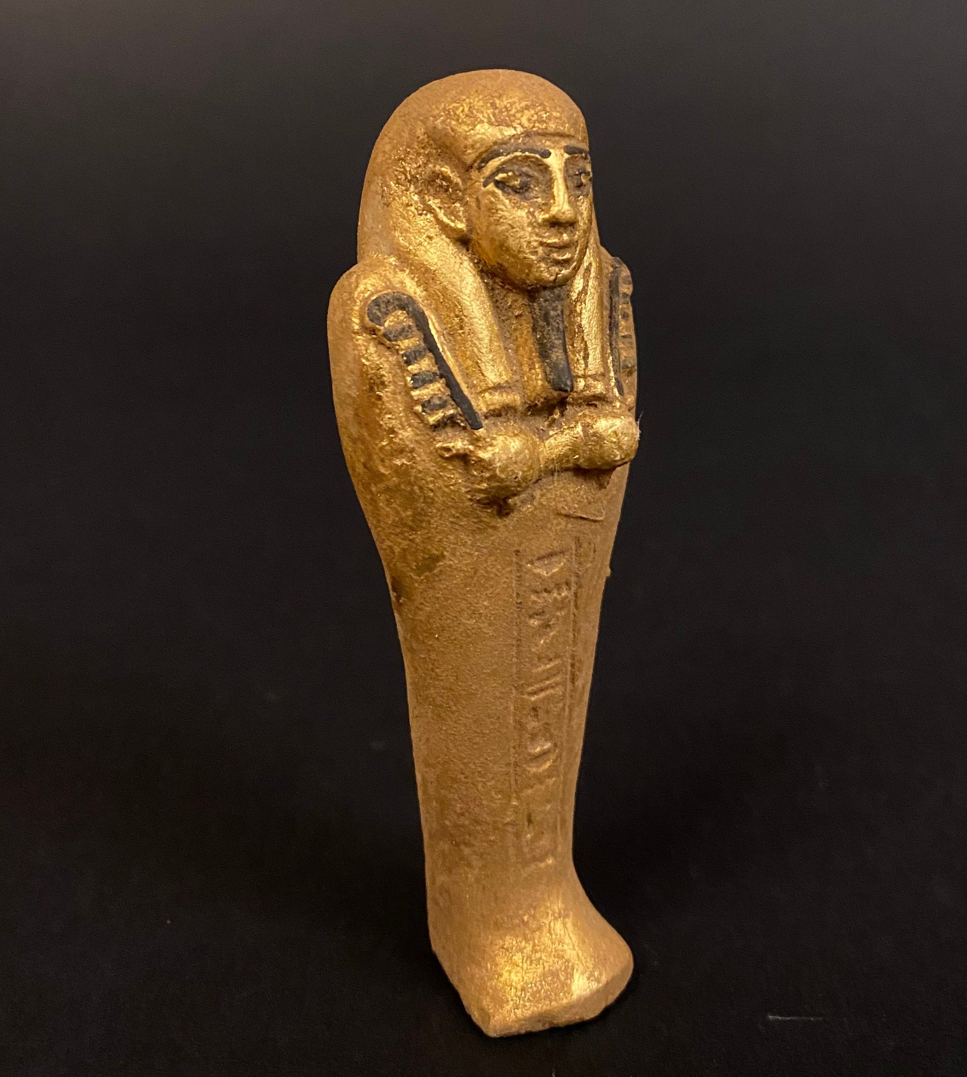 Unique Ancient Egyptian Gilded Ushabti Wearing a tripartite Wig Statue