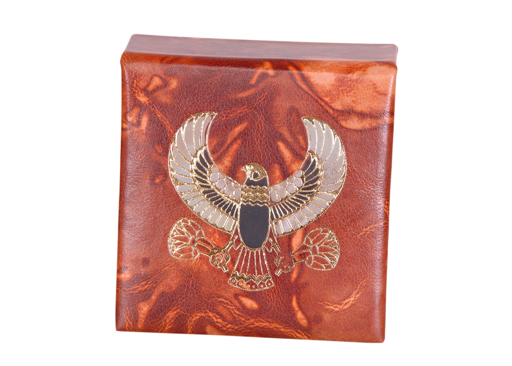 Sorry We donot Ship to Spain And Australia .... This is a fine Egyptian leather note pad that can be used on a desk, by the phone, in the kitchen for shopping lists etc. Tons of plain white paper to keep all those important notes. The cover of the note pad has an embossed image of falcon horus with pretty painted detail. The back of has the image of Queen Nefertiti.comes from smoke and pet free home